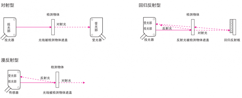 由于以檢測(cè)物體引起的遮光和反射為檢測(cè)原理,所以不象接近傳感器等將檢測(cè)物體限定在金屬,它可對(duì)玻璃·塑料·木材·液體等幾乎所有物體進(jìn)行檢測(cè)。